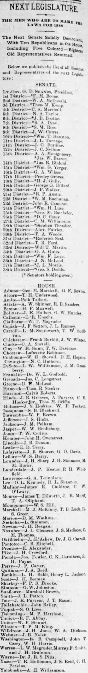The Next Senate Solidly Democratic, With Ten Republicans in the House, Including Five Colored – Eighteen Old Representatives Returned.