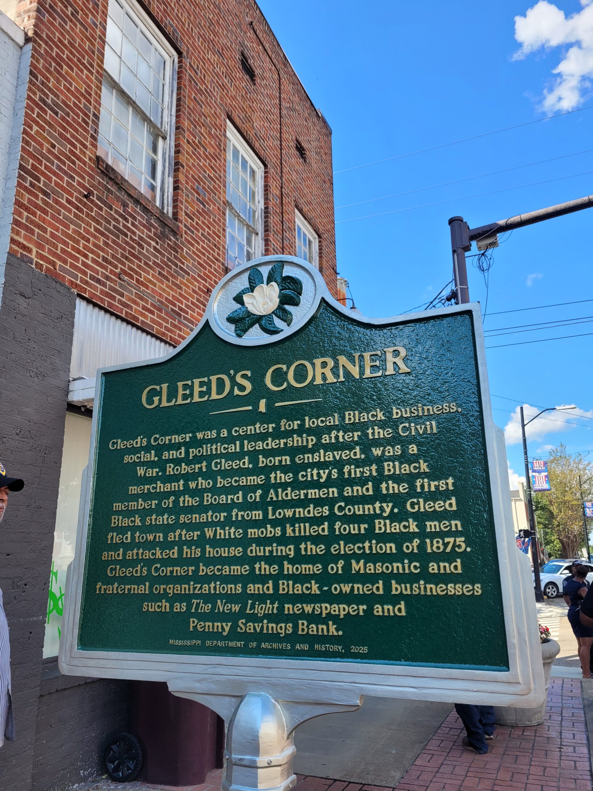Gleed, his wife Susan, and some of their children are buried in historic Sandfield Cemetery in Columbus, MS. Members of the Gleed family are often portrayed in the Mississippi School for Mathematics and Science’s annual Eighth of May Emancipation Celebration, held at Sandfield Cemetery, where high school students tell the stories of notable African Americans who lived in Columbus.