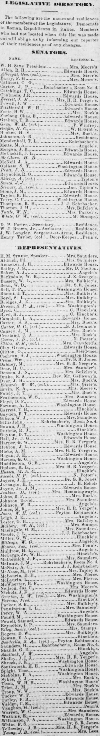 Gray, W. H. – P. Winfrey. [was no longer in legislature]
